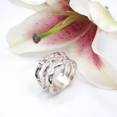 Massive Ringe aus Sterlingsilber, außen quadratisch mit unregelmäßiger Oberfläche und...